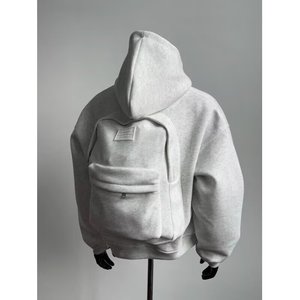 跨境300斤大码男装春季新款连帽卫衣后背书包设计感男简约上衣男