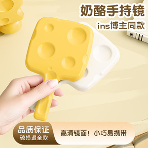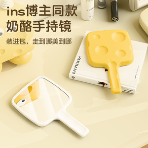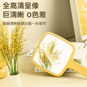 新款手柄镜随身便携手持镜高清美妆镜塑料化妆镜印小镜子奶油树脂