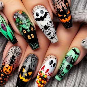 24pcs古堡幽灵惊魂万圣节穿戴甲适合女士可拆卸美甲
