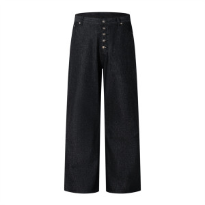 纽扣开襟直筒牛仔长裤男士欧美高街vibe潮纯色基础款阔腿休闲裤子