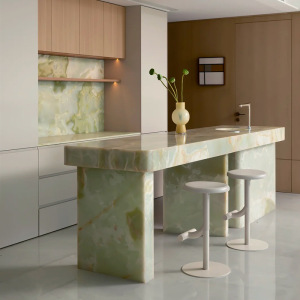 云浮厂家天然大理石奢石青玉洗手台一体盆橱柜台面岛台餐桌别墅