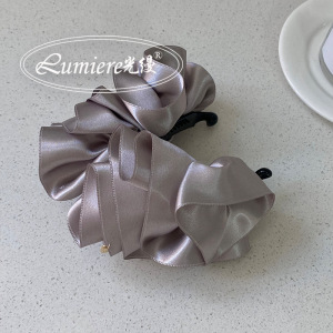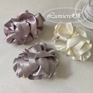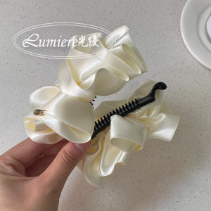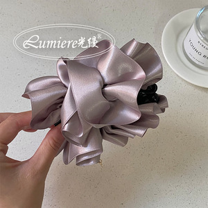 韩式高级感金标缎面花苞香蕉夹时尚立体头花气质高颅顶马尾发夹女