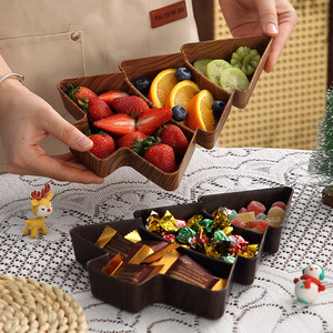 仿木纹水果盘家用客厅高颜值果盘圣诞树分格干果盘糖果塑料零食盘
