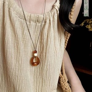 新中式复古串珠项链女2025新款小众设计感气质民族风长款百搭颈链