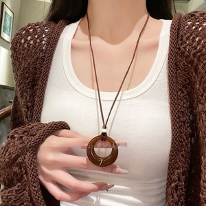 10#米色麻绳缠绕圆圈吊坠咖色麂皮项链