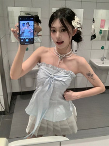 设计感木耳边系带抹胸背心女装夏季小众减龄收腰显瘦无袖纯欲上衣