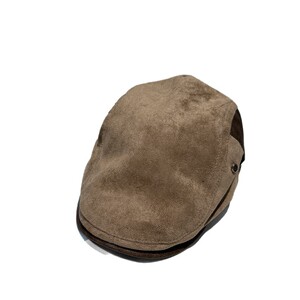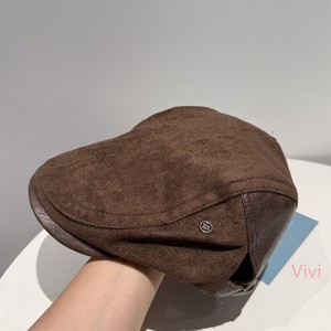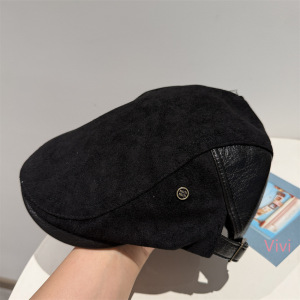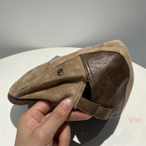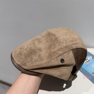 日系麂皮绒拼接PU皮质前进帽男女秋冬做旧画家帽时尚复古鸭舌帽