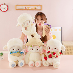 跨境新款可爱玫瑰小羊卡通毛绒玩具公仔咩咩玫瑰小羊送女友布娃娃