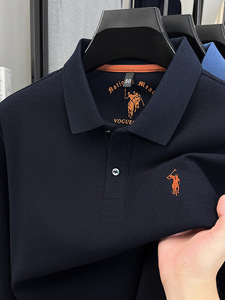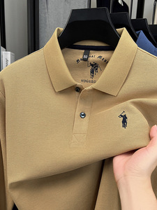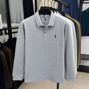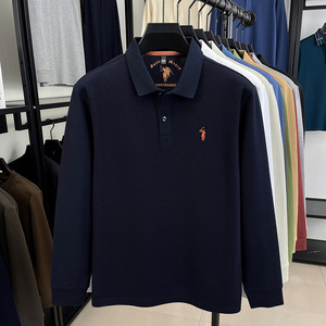100%纯棉跨境秋季新款长袖POLO衫翻领男士纯色休闲刺绣T恤上衣男