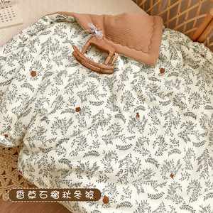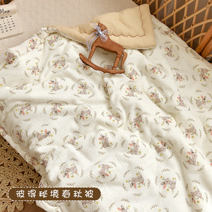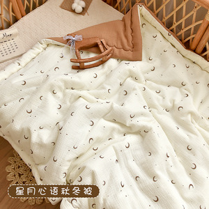 新生宝宝纯棉纱布被子婴儿秋冬加厚盖被幼儿园儿童四季通用空调被