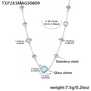 TXP283-蓝色爱心玻璃石钢色项链42+5cm