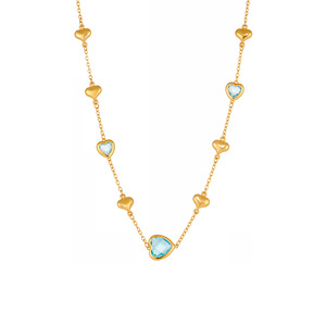 TXP283-蓝色爱心玻璃石金色项链42+5cm