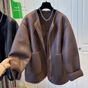 超好看拉链皮毛拼接一体圆领外套女2025秋冬款上衣保暖休闲