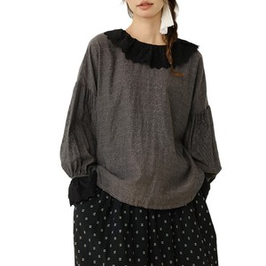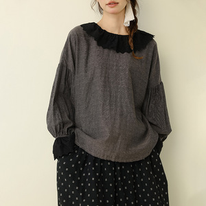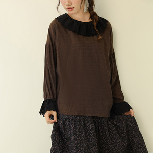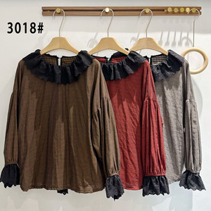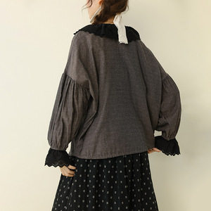 文艺复古刺绣提花双层格子上衣宽松百搭荷叶领长袖娃娃衫秋装新款
