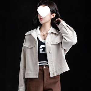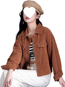 灯芯绒外套女秋季新款2025年休闲夹克短款百搭韩系纯色条绒上衣