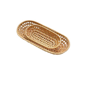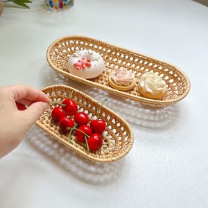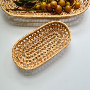 严选跨境越南藤编果盘 食品面包手工编织篮 日式家用点毛巾托盘