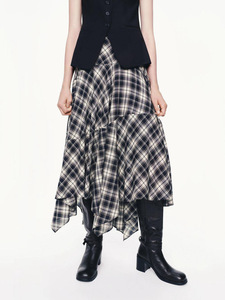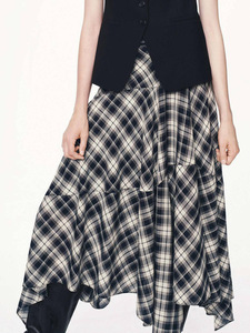 2025年秋季新款斜裁 菱格不规则 下摆半身裙女 复古格纹休闲裙子