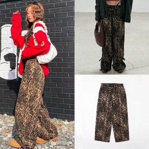 韩国小众 美式辣妹豹纹休闲裤子女阔腿裤宽松直筒裤长裤
