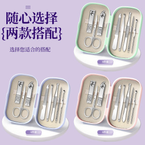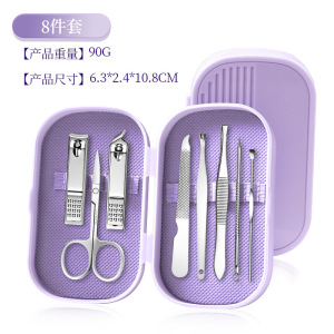 便携式不锈钢指甲剪刀套装8件套修甲指甲刀美甲工具指甲钳全套盒
