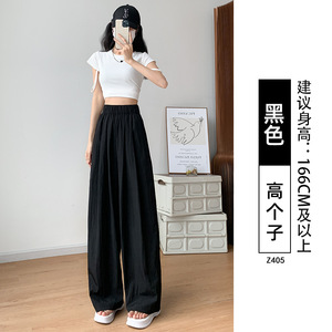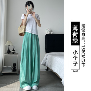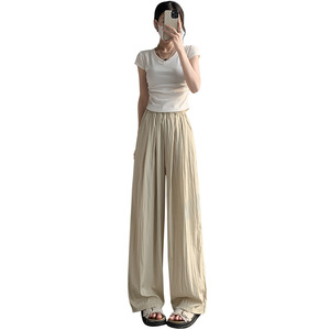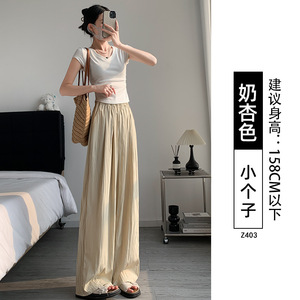 夏季新款薄款冰丝阔腿休闲裤奶杏色女宽松慵懒风日韩系山本裤