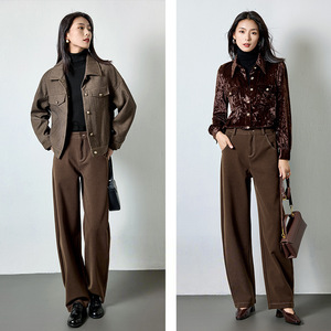 复古高级感时尚简约休闲裤女2025秋季新款高腰显瘦直筒裤阔腿裤子