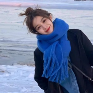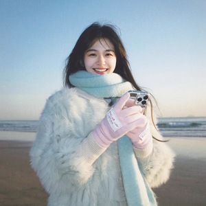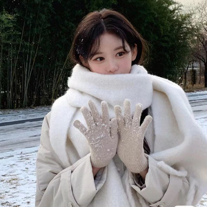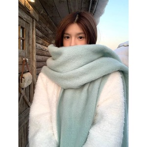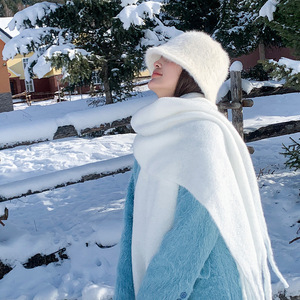 纯白色围巾女秋冬季韩系氛围感保暖加厚学生软糯马海毛围脖高级感
