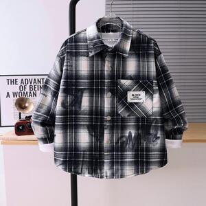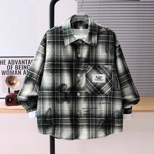 美式格子长袖衬衫外套男新款春秋季全纯棉外搭衬衣设计感小众上衣