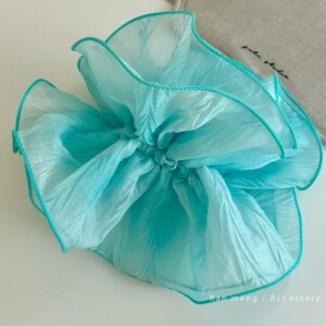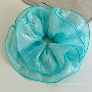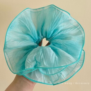 法式清新蓝绿色多层网纱大肠发圈女高级感扎头发低马尾发饰头饰女
