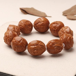浮雕写实双面手工雕刻十八罗汉橄榄核手串核雕盘玩文玩手把件单圈