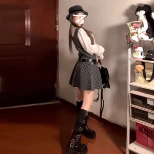 小香学院风波点背带连衣裙子女春秋季2025新款法式衬衫气质一整套