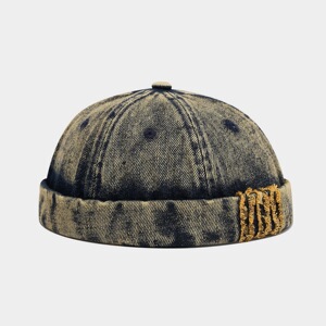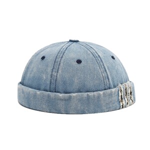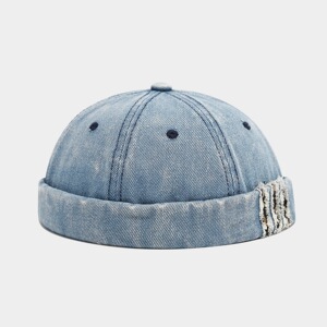 日系潮牌水洗牛仔布地主帽情侣逛街休闲做旧瓜皮帽无檐卷边水兵帽