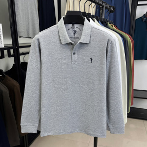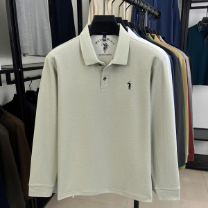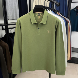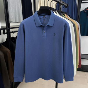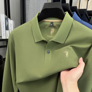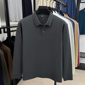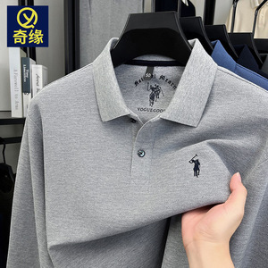 丝光棉纯棉polo衫男2025秋季新款商务休闲纯色刺绣翻领长袖男t恤