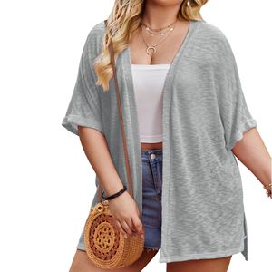 跨境亚马逊新款欧美女式针织衫短袖开叉加大外套夏季大码女装开衫