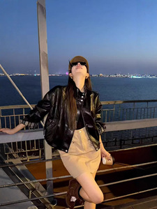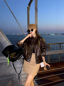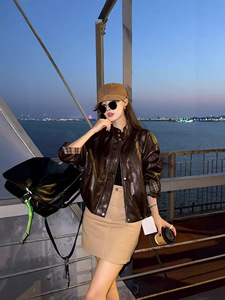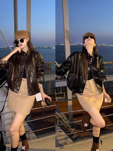 咖色复古立领PU皮衣外套女2025春秋新款小个子时尚炸街机车皮夹克