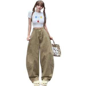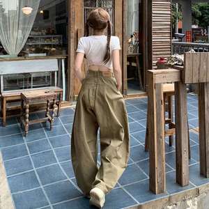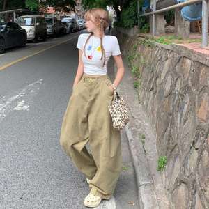 批发咖色美式复古垂感拖地弯刀男女宽松休闲阔腿工装裤