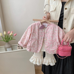 女童外套春秋款2025新款儿童秋季韩版碎花开衫女宝宝洋气秋装上衣