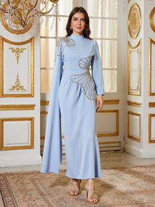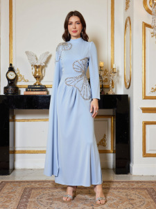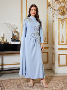 欧美跨境电商爆款女士晚礼服 优雅镶钻女连衣裙 聚会晚会女装长裙