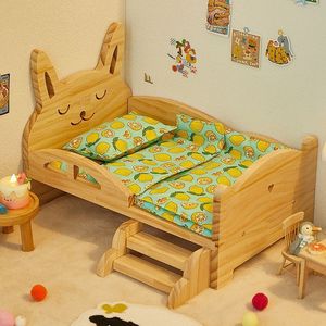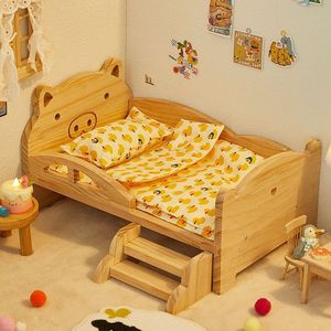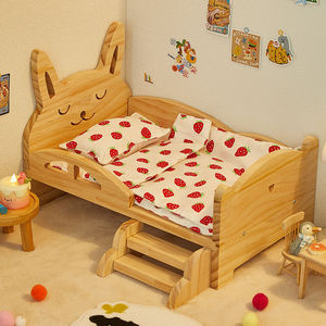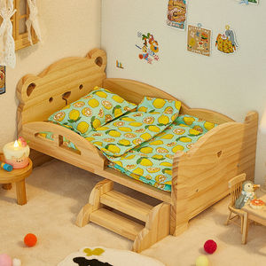 新款棉花娃娃娃床20cm公仔玩偶床上用品三件套bjd实木娃屋睡床