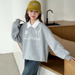女童卫衣早秋2025新款儿童女韩版蝴蝶结翻领卫衣女大童洋气polo衫