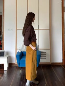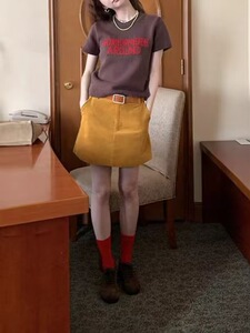 复古感姜黄灯芯绒半身裙2025秋季通勤百搭短裙中长裙