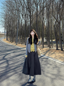 韩系chic撞色假两件针织衫修身毛衣外套女2025秋季开衫高级感上衣