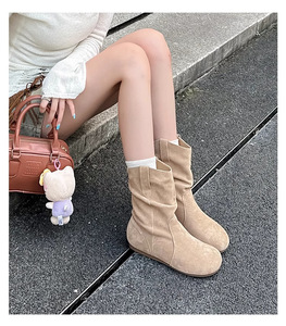 早秋复古小短靴子女2025新款秋冬加绒厚棉靴马丁靴平底堆堆靴