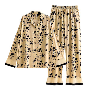 悦内睡衣女春秋季秋款纯棉长袖长裤家居服时尚优雅花瓣阔腿裤套装