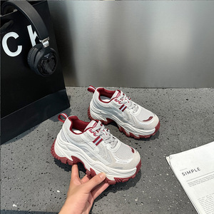 欧洲站厚底真皮网面镶钻增高老爹鞋女2025秋季新款休闲百搭运动鞋