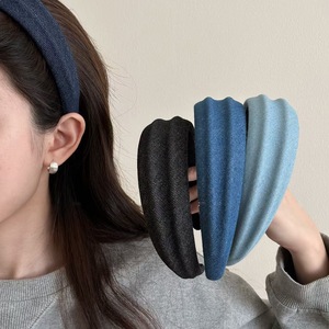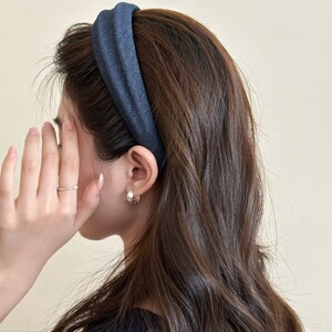 小清新风韩系布艺简约宽边发箍女款复古牛仔高颅顶时尚头箍发饰