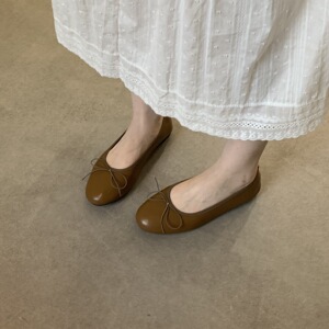 复古圆头晚晚风软皮奶奶鞋2025新款不累脚一脚蹬浅口芭蕾舞单鞋女