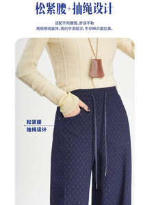 2025年五只白鹅秋冬爆款重工波点提花牛仔阔腿裤满天星女裤子2592