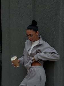 2025春秋新款小众刺绣拉链翻领卫衣减龄直筒长裤显瘦休闲两件套装