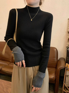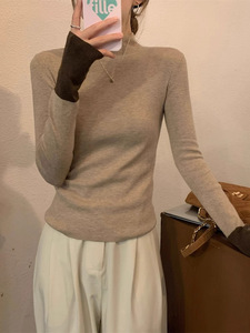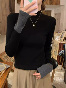 半高领长袖针织衫女装秋季新款修身毛衣内搭黑色打底衫上衣高级感