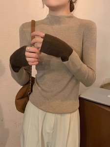 燕麦拼咖色半高领